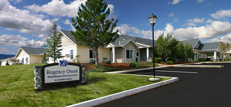 Photo courtesy of Regency Omak Omak, WA – Remodel of an existing 16,700 sq. ft. Alzheimer facility and addition of 10,000 sq. ft. to create a 25,500 sq. ft. skilled nursing facility. The new facility contains 45 rooms with 57 beds. http://www.regencyomak.com/
