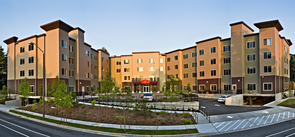 Photo courtesy of Regency Newcastle Newcastle, WA – Mechanical systems for a new, four story building equipped with smoke control systems, indoor pool, commercial kitchen, dining, and resident units.